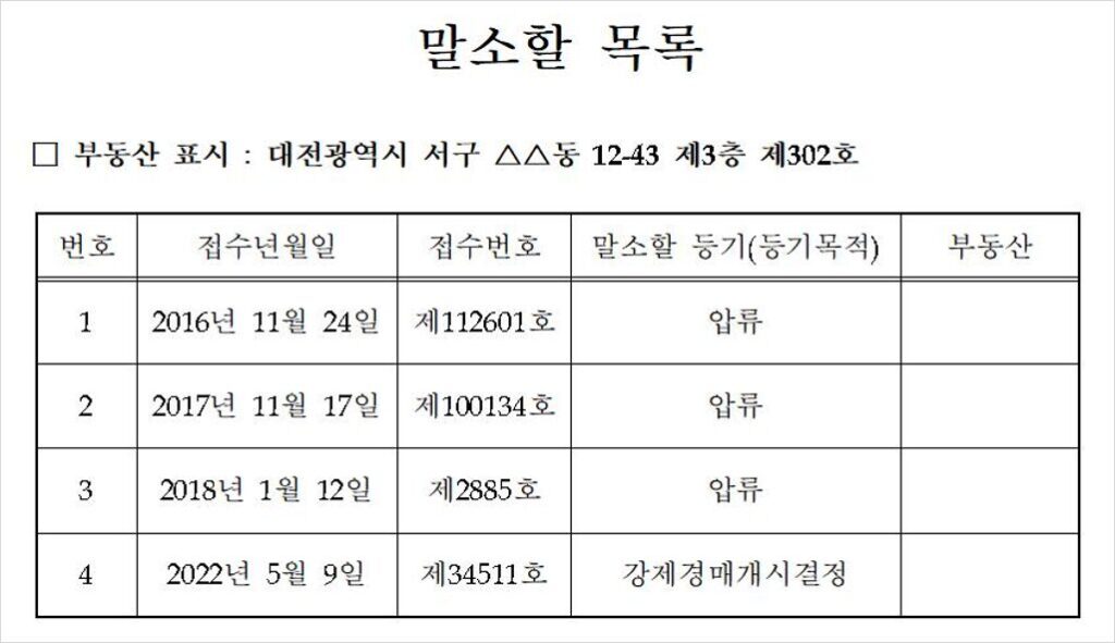 2개 이상의 부동산을 낙찰받은 경우에는 전체 부동산을 기준으로 말소 대상 등기를 작성해야 합니다. 간혹 일부 부동산에 대해서만 말소할 목록을 작성하는 실수가 발생하기도 합니다.