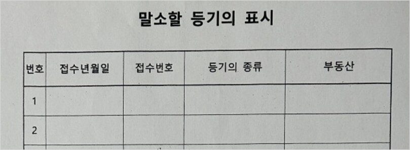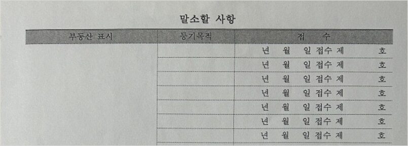 이 글에서는 당사가 직접 제출한 실전 사례를 중심으로 말소할 목록 작성방법을 설명하였습니다. 또한 법원마다 서식이 조금씩 다르더라도, 모든 법원에서 접수 가능한 하나의 서식을 기준으로 작성하는 방법을 함께 정리하였습니다.